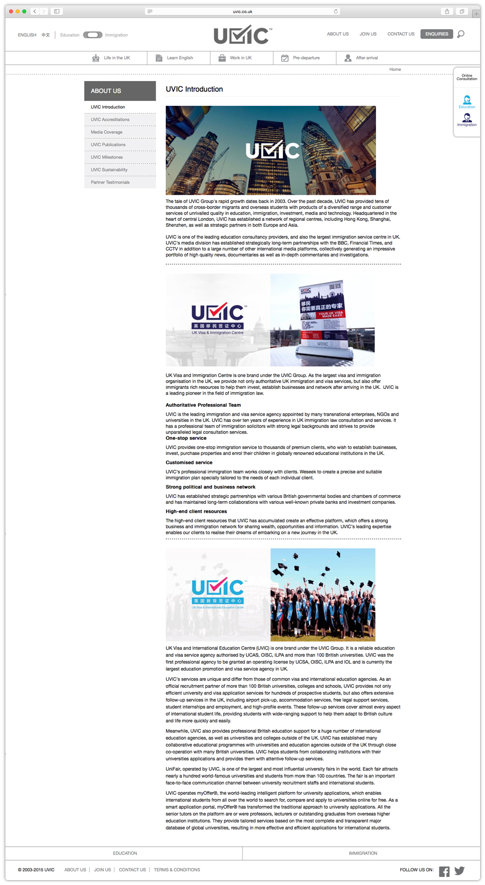 Redesigning UVIC 's official website was sequal after rebranding. We aimed to distinguish visually the different services that UVIC can provide through this website, and it was important as well, the brand is recognised as a whole 'UVIC', but how to tell the customers that UVIC provide 2 different professional services was the question?